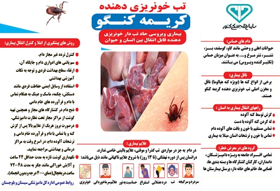 توصیههای بهداشتی برای پیشگیری از انتقال بیماری تب کریمه کنگو *تب کریمه کنگو چگونه منتقل میشود؟* بزرگنمایی و دانلود تصویر در لینک: https://siba.ivo.ir/Zajjo کپی لینک کوتاه گروه خبری : هشدارهای بهداشتی کد خبر : 303079 کلمات کلیدی