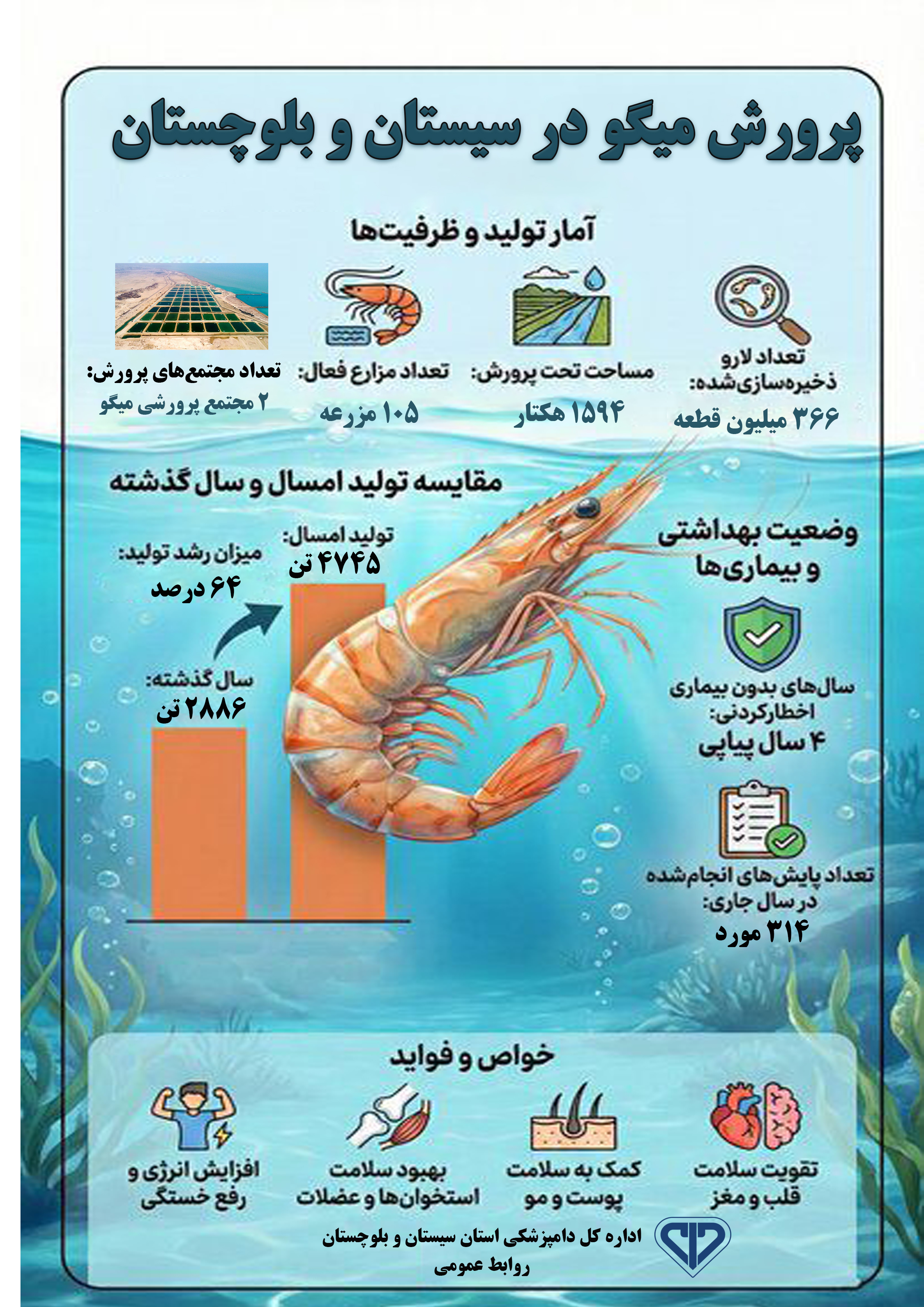 پرورش میگوی سیستان و بلوچستان روی موج توسعه؛ جهش، سلامت، صادرات 1404/09/16 - 02:53 - تعداد بازدید: 12 - کد خبر : 349046 - گروه خبری : عکس - تعداد نظرات : 0